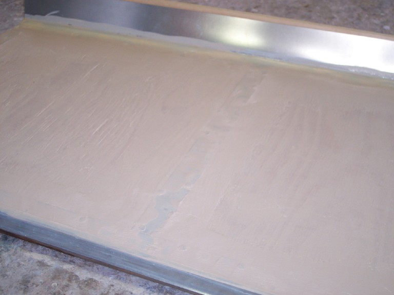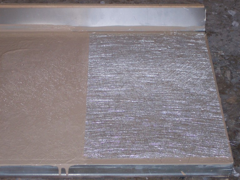 Work one F/G strip at a time. Do not overlap fiberglass, butt seams to within 1/4 inch.